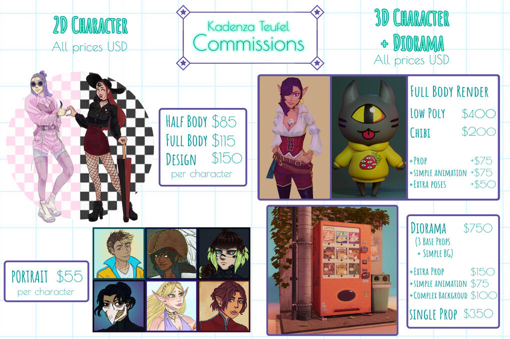 Commission Type: (LowPoly, Chibi, Diorama, or Single Prop) Character models are only full body